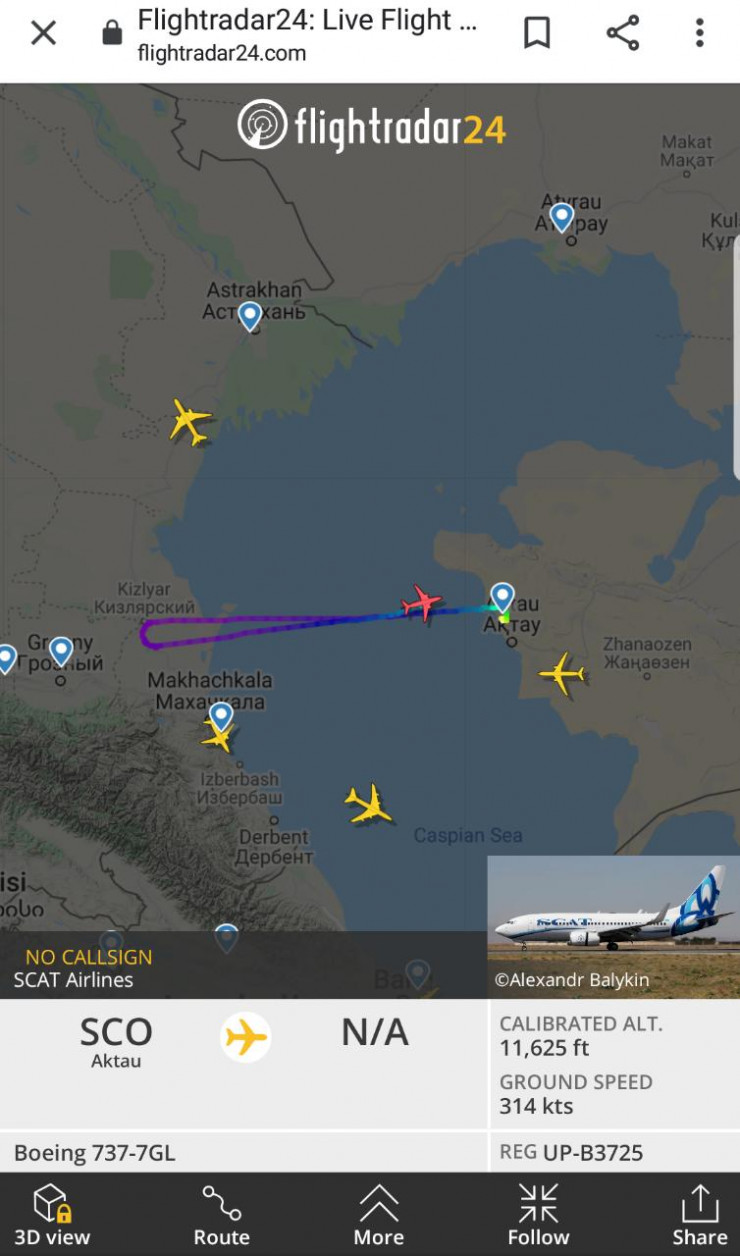 Уточняется, что судно вылетело из Актау после 21.00, спустя 1,5 часа полета самолет вернулся в аэропорт и сел в 23.45.