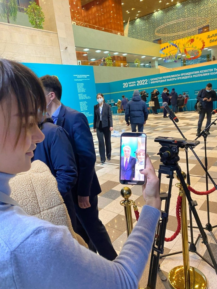 20 ноября Токаев проголосовал на избирательном участке № 58 и ответил на вопросы журналистов. После общения с прессой Президент направился в сторону выхода. В этот момент к нему подошла девушка и попросила совместное селфи.