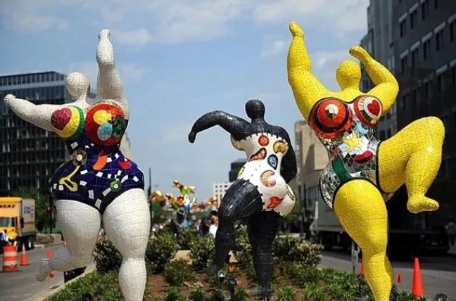 Кейінірек сауда орталығының өкілдері бұл мүсіндердің плагиат екенін мойындады. Расында да Парижде осындай мүсіндер орнатылған. Оның авторы - француз суретшісі, мүсінші Ники де Сен-Фалль.
