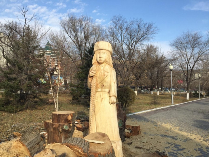 Семейдегі Мәншүк Мәметованың ағаштан жасалған мүсіні