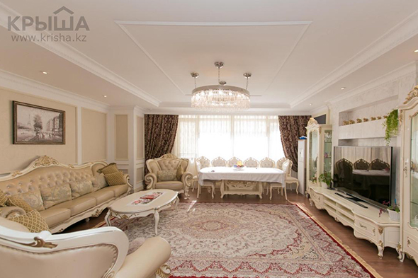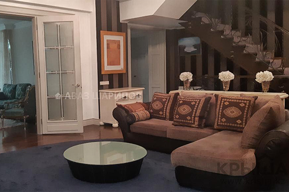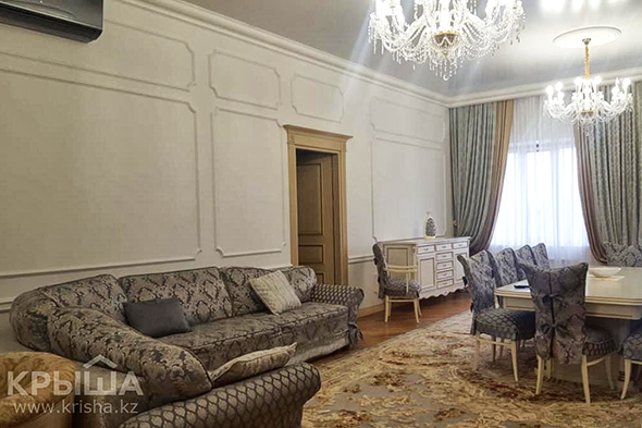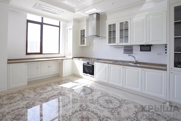 Следующая в списке - пятикомнатная квартира площадью 380 квадратных метров за 1,9 миллиона тенге. Недвижимость расположена в алматинском коттеджном городке Алем, в трехэтажном кирпичном доме 2008 года постройки, на втором этаже.