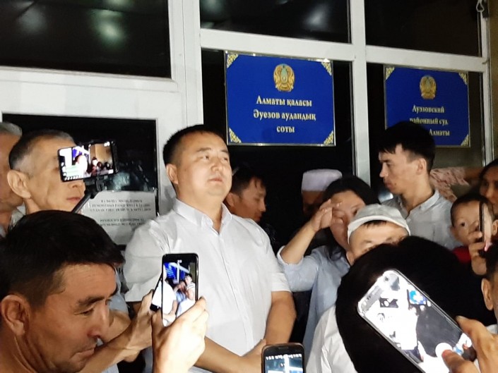 Во время оглашения решения суда у здания собрались сторонники Бияша и члены движения "Атажурт". Они призывали освободить подсудимого.