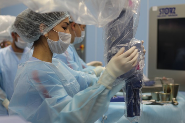 "В реальности в операционной, конечно, совсем разные ситуации случаются, - продолжает Рза Аманжоловна. - После того как Сарвиназ пришла на мое место, я теперь все больше времени уделяю операциям по нейрохирургии. Здесь у нас длительные операции. Если основной этап еще не закончен, то я остаюсь. Если устаю, то дежурная сестра может подменить, за это время можно поесть, чай попить. Так меняемся. У нас как-то была операция до четырех утра. Нейрохирурги выполняли транслабиринтный доступ к опухоли в головном мозге. В десять часов утра начали. В пять вечера у нас был перерыв на обед. Я не уходила, была до конца в операционной на случай экстренности".