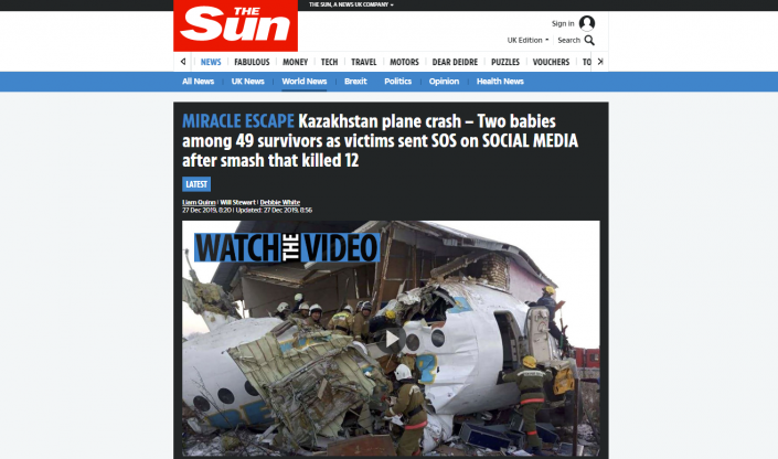 Басылым материалда оқиғаның мән-жайын жазып, 28 желтоқсан Қазақстанда аза тұту күні болып жарияланғанын жазған. Сондай-ақ газеттегілер апат салдарынан қаза тапқан қазақстандық әріптесі Дана Круглова туралы да атап өткен.