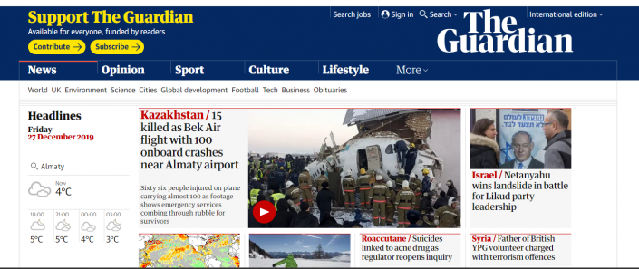 Бұл басылым да америкалық ABC News секілді Алматыдағы апатты күннің басты жаңалығы деп таныған. Газеттің сайтына кірсеңіз, ең алдымен бүгінгі апат туралы материал көзге түседі.