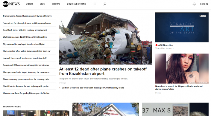 Америкалық ABC телеарнасының жаңалықтар бөлімі Алматыдағы апатты күннің негізгі жаңалығы ретінде сайттың негізгі бөлігіне жариялаған. Сайтқа кірген бойда көзге Қазақстандағы апат пен оның суреті түседі.