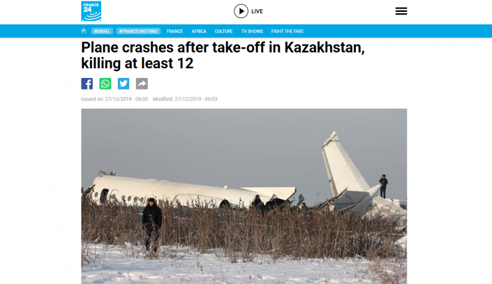 Франциялық France 24 телеарнасының сайтында бүгінгі оқиға туралы толығырақ жазылған. Материал сайттың басты жаңалықтары арасында тұр.