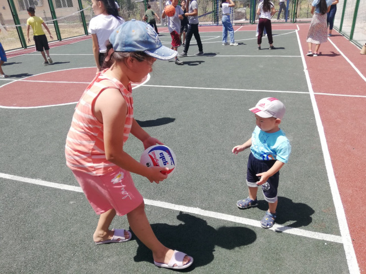 Каждая площадка включает в себя большое спортивное поле с искусственным покрытием, освещением и высоким ограждением. На них можно играть в баскетбол, волейбол, футбол, теннис. Юным спортсменам от компании также вручены игровые мячи.