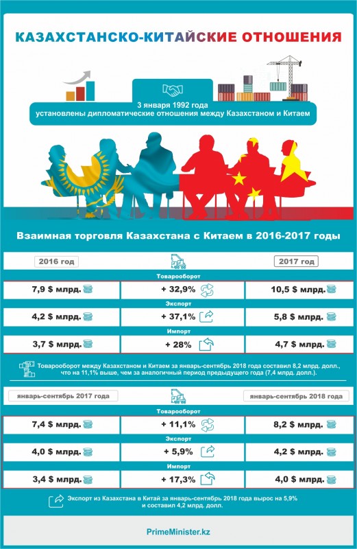 КНР является одним из крупнейших внешнеторговых партнеров Казахстана. Как отмечает сайт премьера, страны имеют хорошие перспективы во многих сферах двустороннего торгово-экономического сотрудничества.