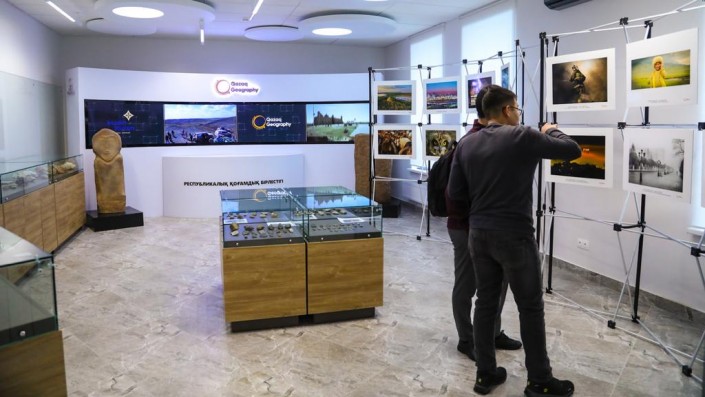 Мероприятие началось с ознакомительного тура по новому офису QazaqGeography. Старое здание 1968 года постройки в короткий срок было реконструировано и сейчас представляет собой современный офис, в котором будут также работать музей, электронная библиотека и медиацентр.