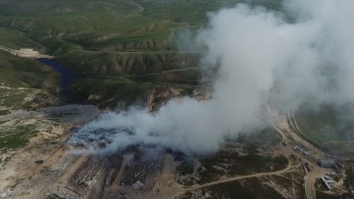 Как выглядит горящий мусорный полигон близ Алматы