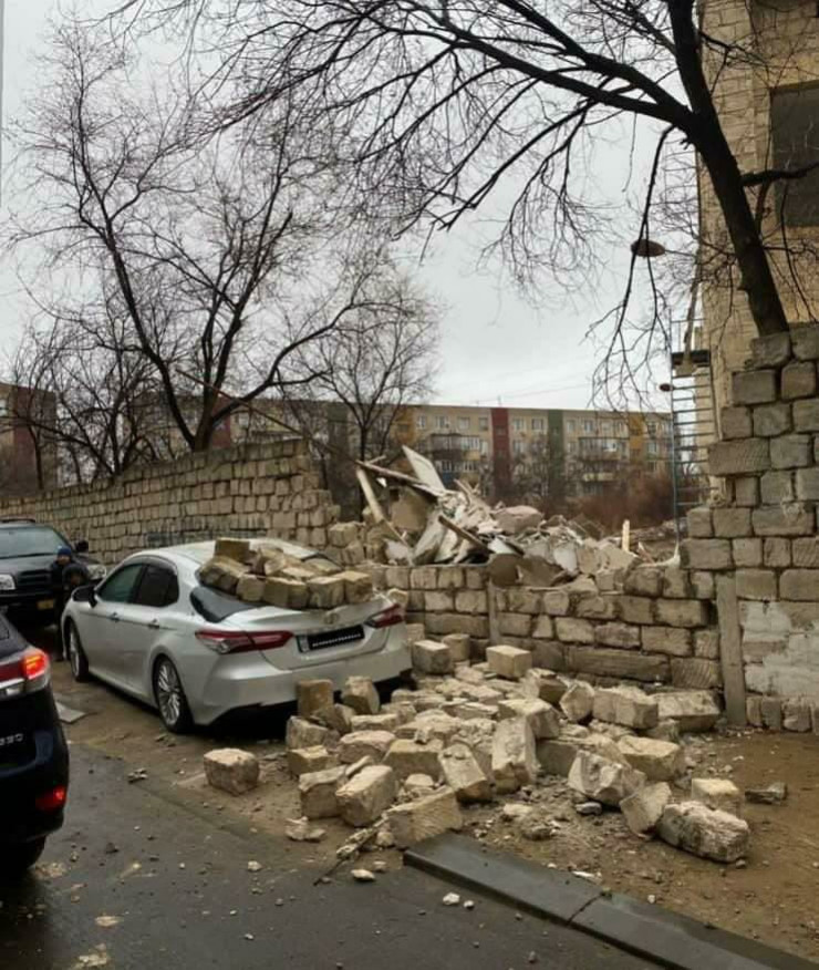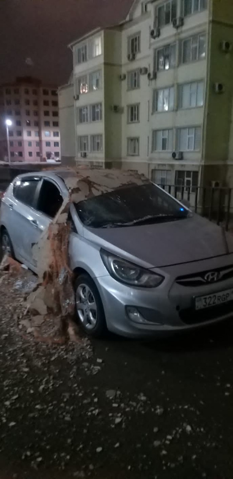 По данным издания, в 26-м микрорайоне Актау возле 41-го дома кирпичный забор обрушился на припаркованный рядом автомобиль. Очевидцы предполагают, что старое строение не выдержало сильного ветра.