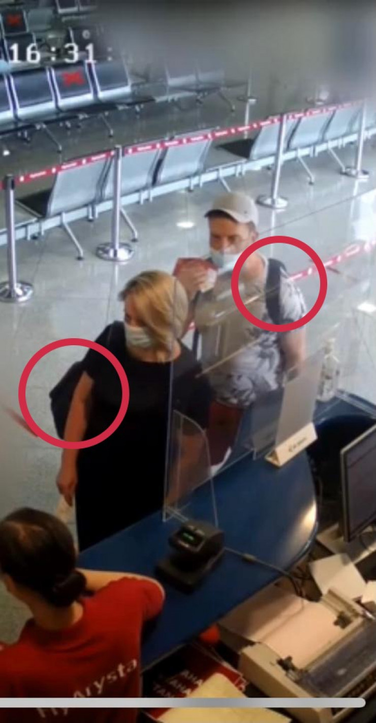 На видео, опубликованном авиакомпанией, видно, что пассажир и его супруга идут на рейс с сумками.