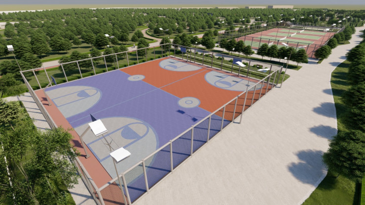 Так как в городе намерены развивать массовый спорт, в парке появятся теннисные корты, баскетбольные площадки, скейтпарки, зоны для пикников с навесами.