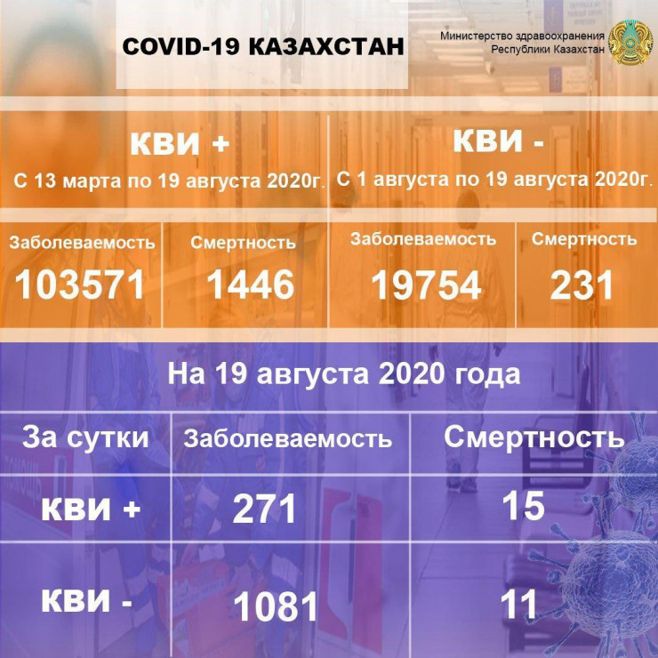 За прошедшие сутки от коронавируса и COVID-подобной пневмонии умерли 26 человек, передает Tengrinews.kz со ссылкой на Межведомственную комиссию по нераспространению COVID-19.