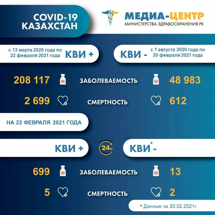 Стало известно, сколько казахстанцев умерли от коронавируса за сутки, передает Tengrinews.kz со ссылкой на Минздрав. Сообщается, что от коронавируса за сутки скончались пять человек (всего 2 699), а от пневмонии с признаками COVID-19 - двое (всего 612).