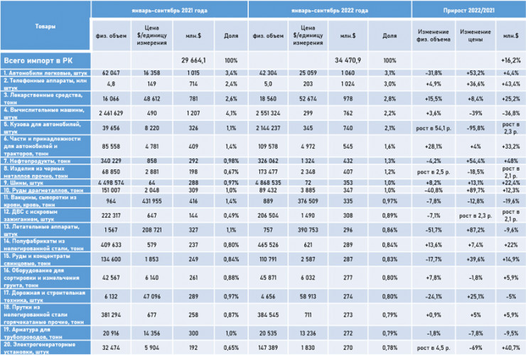 По данным экспертов, рост импорта в Казахстан обосновывается увеличением ввоза таких товаров, как: