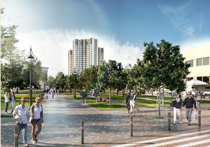 Рядом со зданиями появятся палисадники, сезонные кафе. С каждой стороны проезжей части улицы Толе би посадят деревья и другие зеленые насаждения. Планируется установить уличные скамьи, урны, вазоны. При этом фонтаны не предусмотрены.