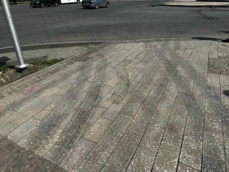 Следы от колес автобуса до сих пор видны на тротуаре, куда он выехал на всей скорости.