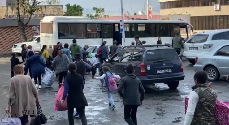 Жители Степанакерта уезжают из города в связи с обострением ситуации в Нагорном Карабахе. Скриншот видео. Фото РИА Новости