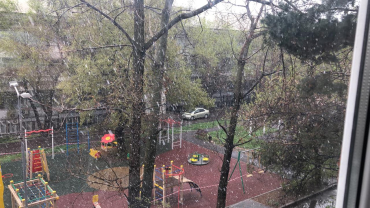 9 апреля южные города Казахстана и соседних центральноазиатских республик, в которых температура воздуха уже поднималась до плюс 25, завалило снегом. Пользователи социальных сетей делятся видео и фотографиями зеленых растений, покрытых белом полотном, передает корреспондент Tengrinews.kz.