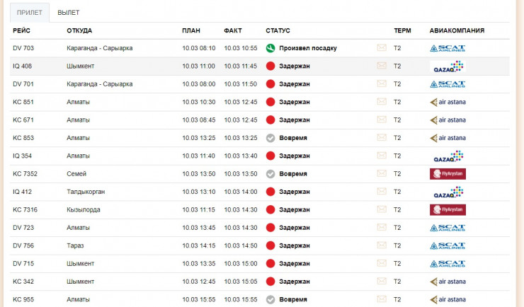 В аэропорту Нур-Султана задерживаются авиарейсы на прилет и вылет. Из-за сложных погодных условий коэффициент сцепления искусственной взлетно-посадочной полосы опустился ниже нормы.
