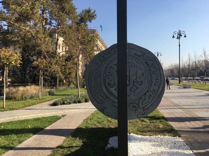 Арт-объект "Монета" расположен напротив бывшего здания Министерства финансов КазССР. Археологи сообщают, что благодаря этой монете можно представить историю Алматы 800 лет назад.