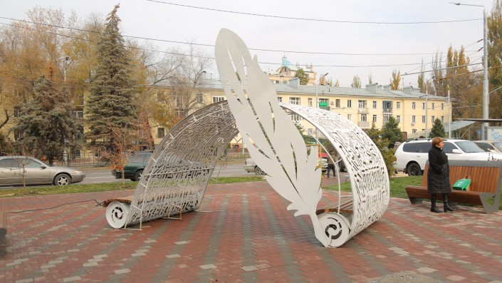 Арт-объект символизирует тюркские письмена.