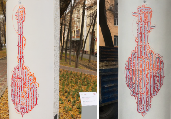 Как сообщают организаторы PARK FEST, малая архитектурная форма посвящена знаковому казахскому музыкальному инструменту на основе популярной среди молодежи и поклонников стрит арта - техники каллиграфии.