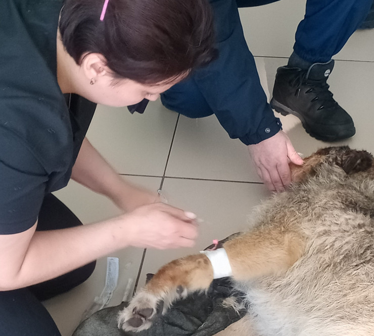 Вскоре "Газель" доехала до приюта Андрея Исакова, где собаку передали в руки ветврачей, оказавших ей необходимую помощь.