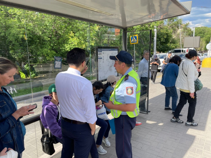 Сомнительные наклейки с QR-кодом расклеили на остановках в Алматы Фото пресс-службы акимата Алматы
