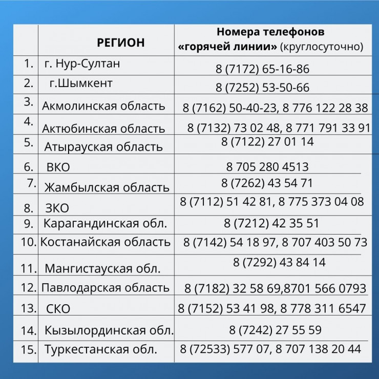 В Комитет по охране прав детей можно дозвониться по следующим номерам: 8 (7172) 74 25 28, +7 776 170 73 83, +7 777 183 65 67, +7 701 378 66 29.