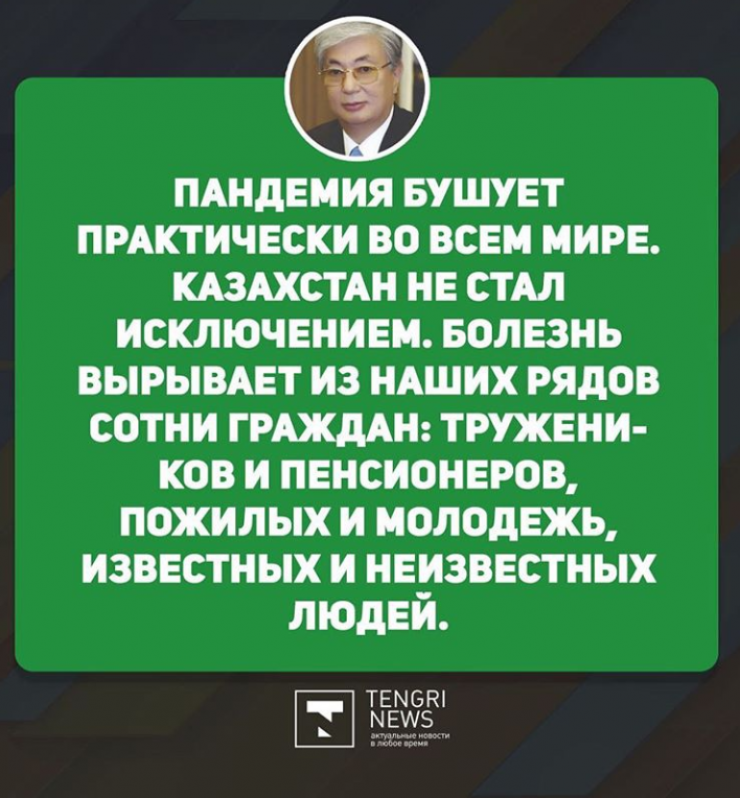Сегодня в Twitter Президент Касым-Жомарт Токаев заявил, что смертность от коронавируса и пневмонии остается высокой как в Казахстане, так и во всем мире. Он поручил правительству усилить меры по соблюдению гражданами карантина.