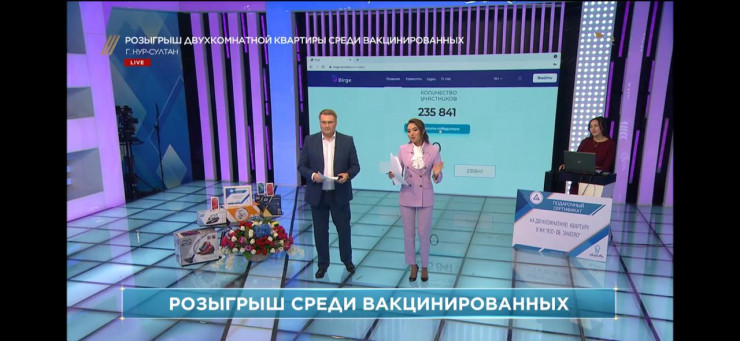 В прямом эфире телеканала "Хабар" провели розыгрыш двухкомнатной квартиры в Нур-Султане среди вакцинированных в столичных прививочных пунктах граждан, передает Tengrinews.kz со ссылкой на официальный сайт городского акимата.