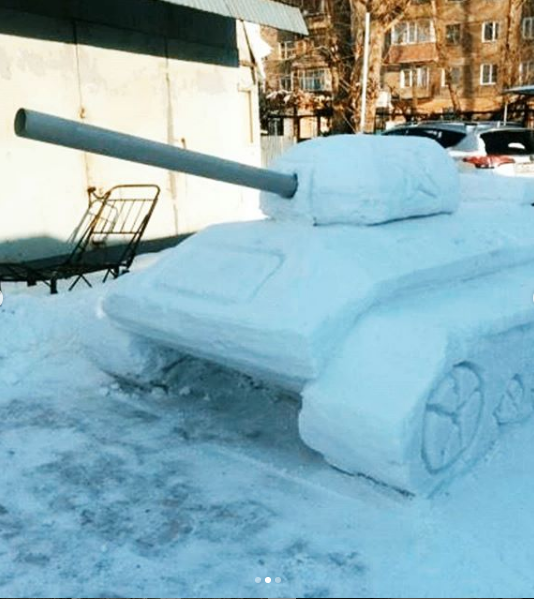 Видео со стреляющим снежным танком запечатлели очевидцы и выложили в Instagram. За несколько часов полуминутный ролик собрал почти полсотни тысяч просмотров и продолжает набирать популярность в Сети.