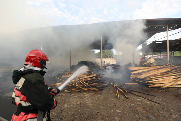 Строительный рынок загорелся ночью в Алматы Фото: ДЧС Алматы