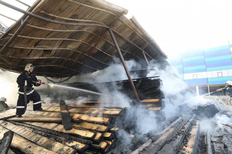 Строительный рынок загорелся ночью в Алматы