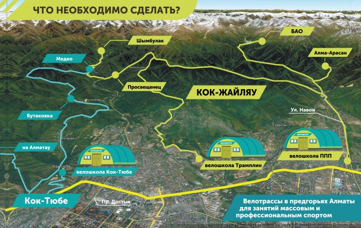 Сейчас организаторы активно обсуждают данный проект и горные маршруты с акиматом города. Часть вопросов необходимо обсуждать с министерством сельского хозяйства, так как большинство мест, через которые планируется проложить велодорожки, относятся к заповедникам.