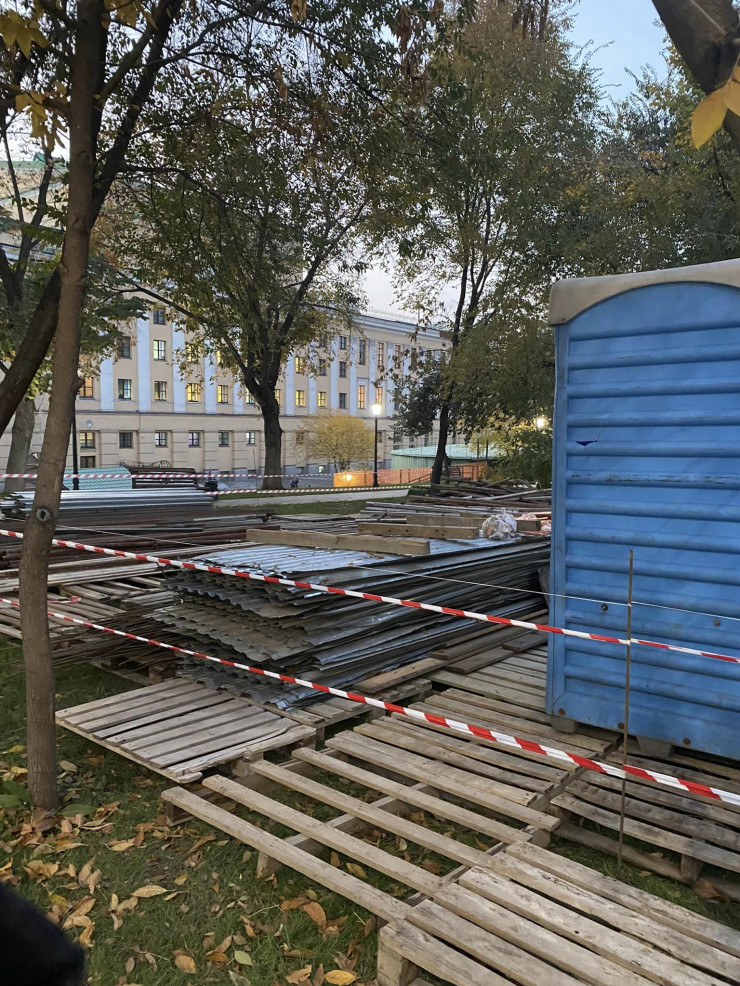 Алматинцев обеспокоило строительство в сквере около Казахского национального театра оперы и балета имени Абая, передает корреспондент Tengrinews.kz. Начиная с октября кусок сквера со стороны Жамбыла-Назарбаева огородили лентой, привезли строительные материалы и поставили биотуалеты для рабочих.