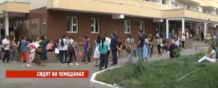 Чтобы получить комнату, им необходимо пройти медосмотр. Однако получить справку не так просто. Врачи университета не справляются с потоком. В итоге своей очереди ждут около двух тысяч человек: с чемоданами прямо у здания университета.