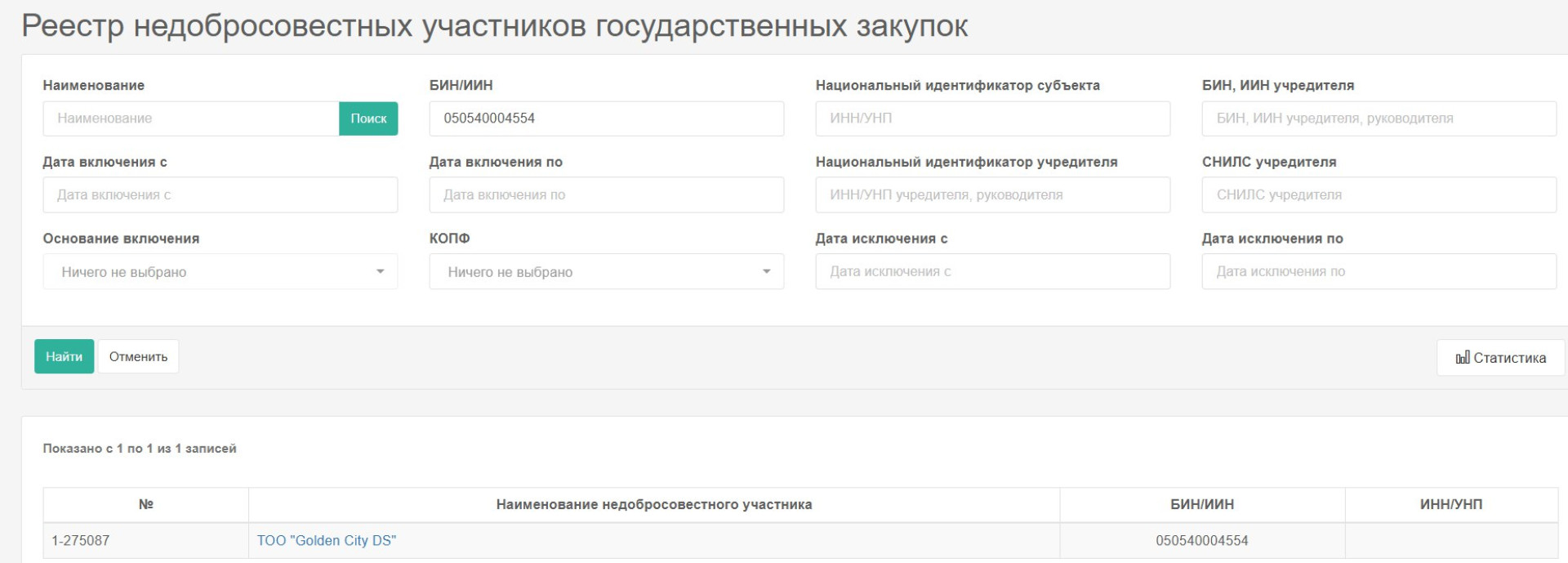 Согласно данным на сайте госзакупок на 20 марта, ТОО числится в реестре недобросовестных участников государственных закупок.
