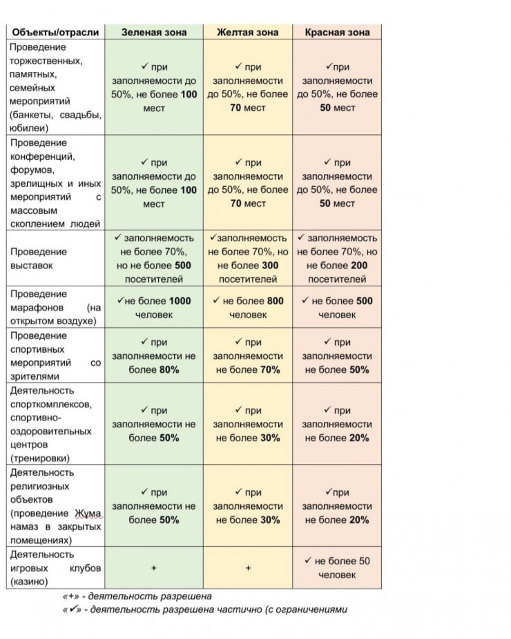 Ослабление карантинных ограничений коснется и других объектов и мероприятий. Подробнее - в таблице ниже.
