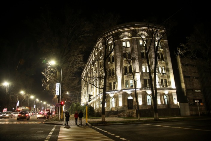 Параллельно продолжается установка архитектурной подсветки знаковых объектов города. Буквально недавно новыми красками заиграла архитектура здания Казахстанско-Немецкого университета.