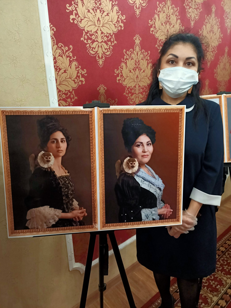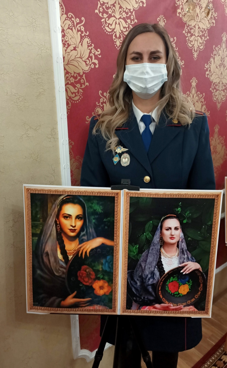 "Я выбрала картину мексиканского художника Хесуса Эльгеры. Он в основном рисовал портреты своей супруги. Она была его моделью. Здесь мы внешне не очень похожи, но сходство больше отражается в мелочах. На самом деле это довольно тяжело - в точности кого-то скопировать, потому что у каждого свои черты лица, но было интересно", - рассказала инспектор-психолог батальона дорожно-патрульной полиции Екатерина Буданова.