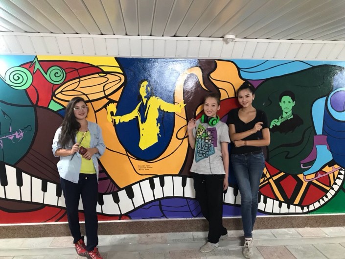 Рисунки с изображением бронзового призера Олимпиады в Сочи Дениса Тена, музыканта и композитора Батырхана Шукенова, а также лидера группы "Кино" Виктора Цоя появились на улице Тимирязева в районе остановки КазНУ.