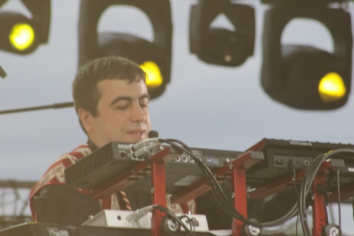21.33 На сцену выходит группа Speed Caravan, год назад завоевавшая сердца публики своей невероятной энергетикой. В составе мультинационального афро-рок-коллектива музыканты из Алжира и Франции. Они исполняют музыку, в которой можно найти отсылки к The Cure и The Chemical Brothers, при этом с арабским колоритом.