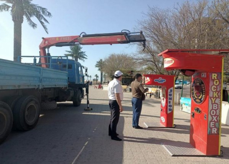 "В целях борьбы с несанкционированной предпринимательской деятельностью игровые автоматы, велосипеды и машинки на набережной 14-го микрорайона конфисковали и отправили на штрафстоянку. Предприниматели смогут их забрать, уплатив штраф и предъявив правоустанавливающие документы на имущество. Ранее акиматом города неоднократно выдавались письменные предупреждения, а также оповещались через социальные сети о необходимости сноса незаконных павильонов. Несмотря на это, нарушая закон, предприниматели продолжали работать. В настоящее время начаты работы по сносу и конфискации имущества в рамках закона. Кроме того, работники ГКП "АУЭС" отсоединили незаконно проведенные кабели", - разъяснил заведующий сектором городского отдела ЖКХ Анвар Туляков.