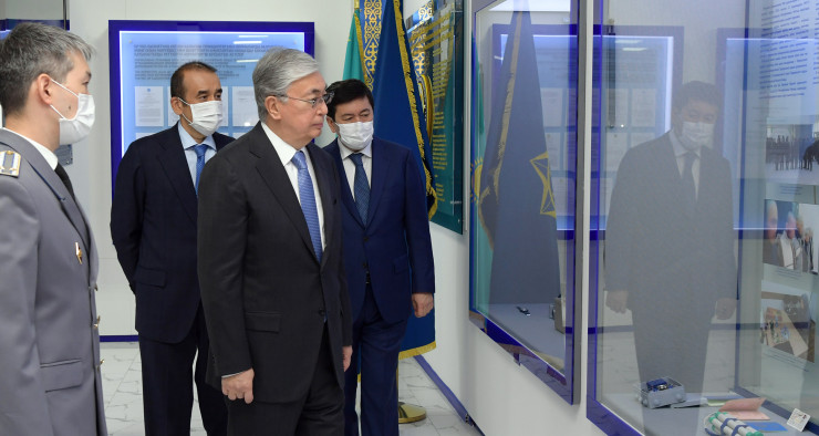 Перед совещанием Глава государства возложил цветы к стеле памяти сотрудников органов КНБ, погибших при исполнении служебных обязанностей, а также осмотрел экспозицию реконструированного в 2017 году музея центрального аппарата КНБ, который охватывает историю развития комитета с момента обретения независимости.