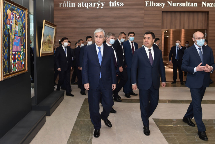 Президенты Казахстана и Кыргызстана посетили международный финансовый центр "Астана" в заключительный день госвизита Садыра Жапарова в Казахстан, передает Tengrinews.kz со ссылкой на сайт Акорды.