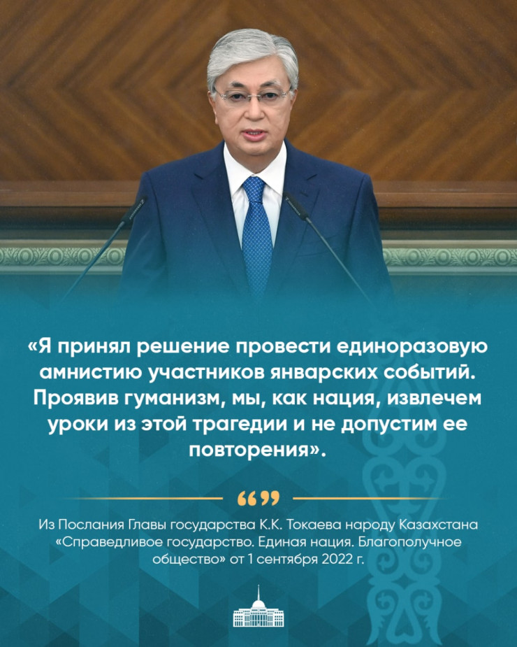 Напомним, в Послании народу 1 сентября Касым-Жомарт Токаев объявил амнистию участникам январских событий.